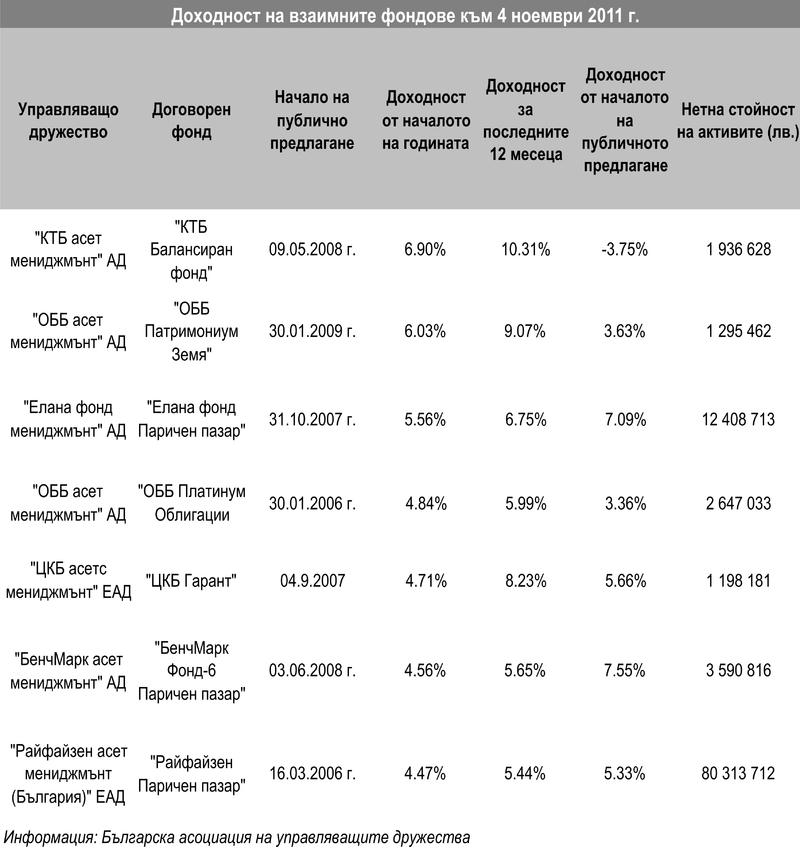 Българските договорни фондове, които бележат най-висока доходност от началото на тази година, са инвестирали на паричния пазар. Това показват данните на Българската асоциация на управляващите дружества.