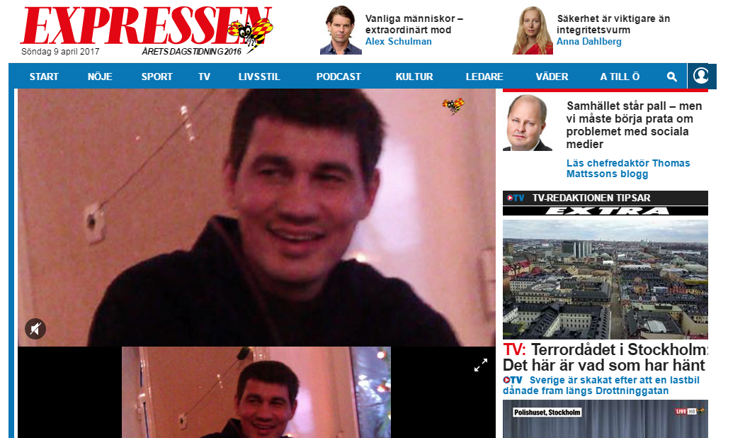 Шведският в. "Експресен" съобщи, че предполагаемият извършител на терористичния атентат в Стокхолм се казва Рахмат Акилов, съобщи БТА.
