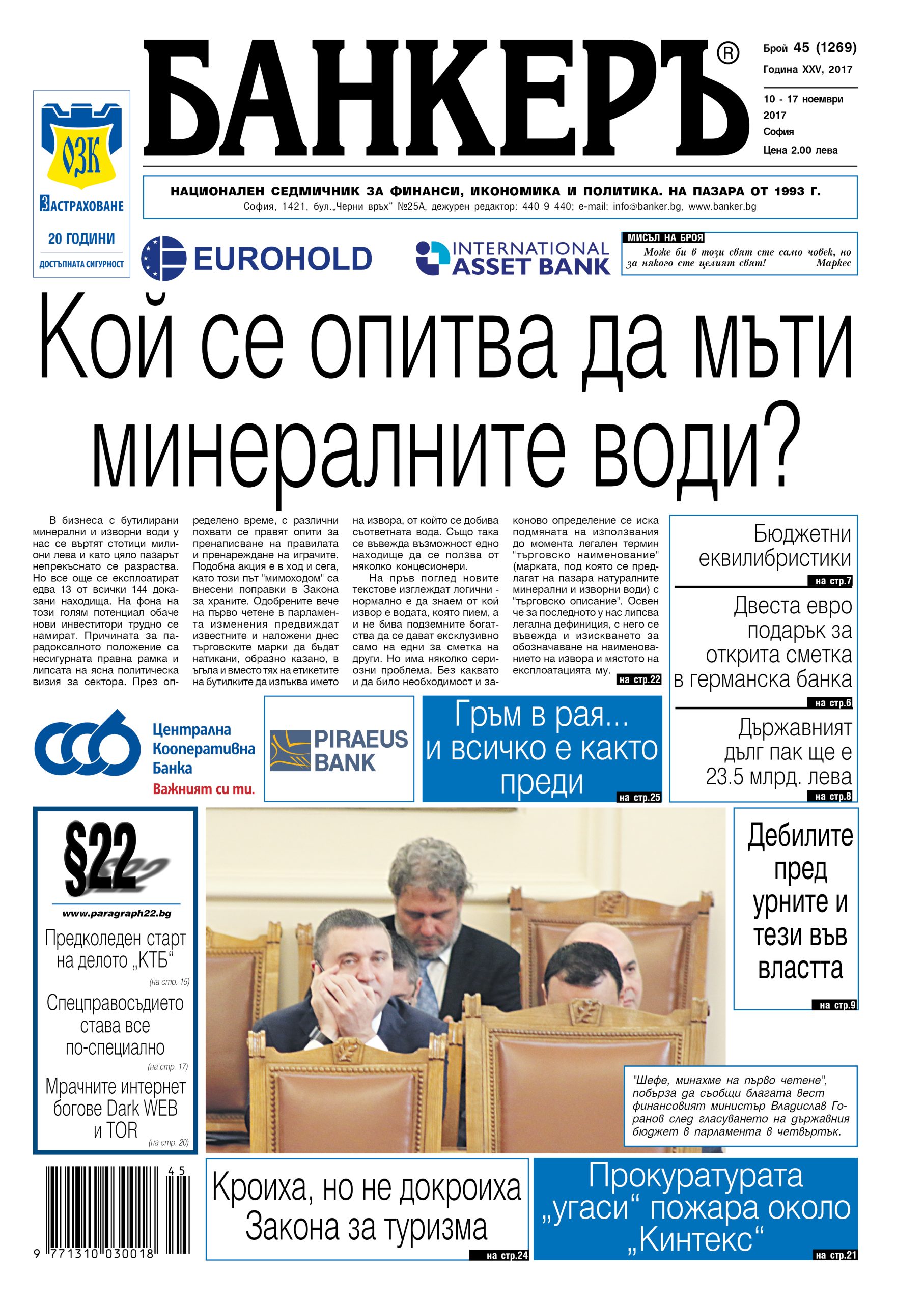 В бизнеса с бутилирани минерални и изворни води у нас се въртят стотици милиони лева и като цяло пазарът непрекъснато се разраства. Но нови инвеститори се намират трудно. Причините са несигурната правна рамка и липсата на ясна политическа визия за сектора. Подобна акция е в ход и сега, като този път "мимоходом" са внесени поправки в Закона за храните. Одобрените вече на първо четене в парламента изменения предвиждат известните и наложени днес търговските марки да бъдат натикани в ъгъла и вместо тях на етикетите на бутилките да изпъква името на извора, от който се добива съответната вода. Тоест, вместо "Горна баня" да пише "Домус дере", вместо "Торн Спринг" – "Трънска Банкя", "Бачково" да стане "Баджова вода", а "Хисар" – "Чобан чешма".