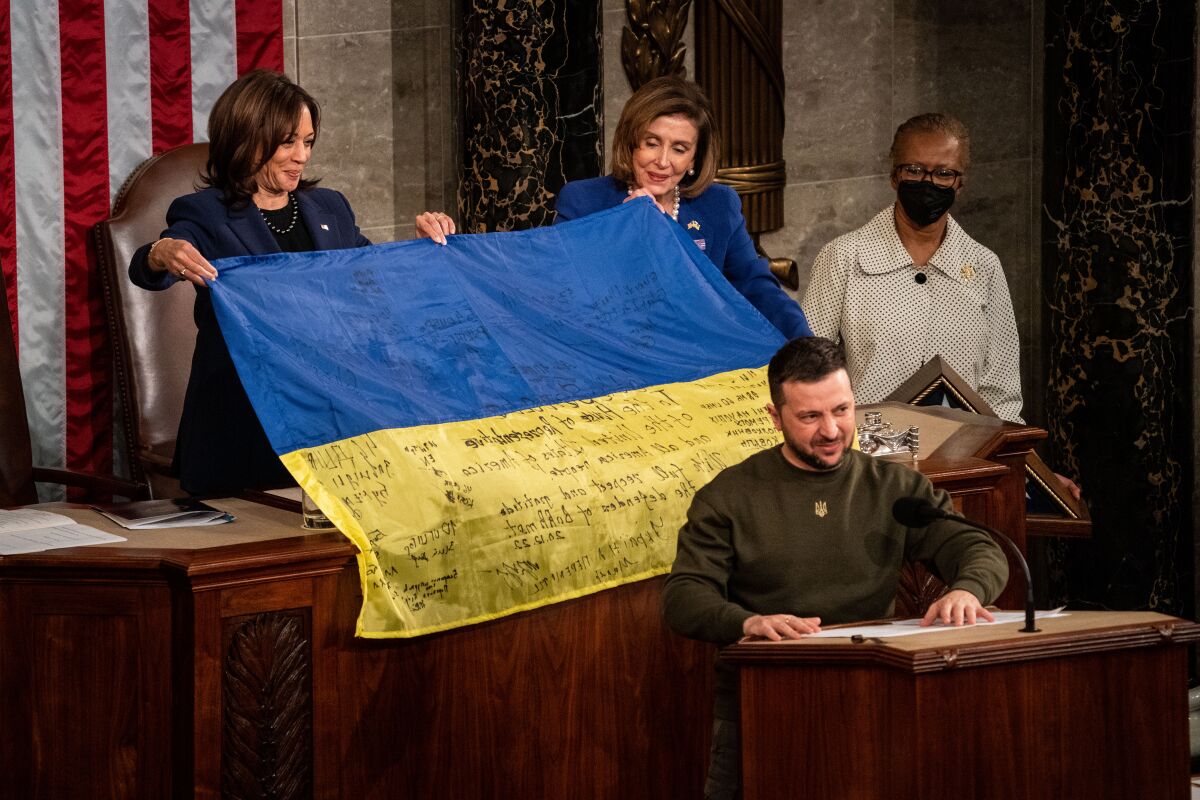 Украинският президент благодари на президента Джо Байдън, американските конгресмени и „обикновените хора“ на Америка за тяхната толкова важна за Украйна подкрепа. Байдън каза, че украинците „вдъхновяват света“ и призова американците и света да продължат да подкрепят Украйна през 2023 г.
