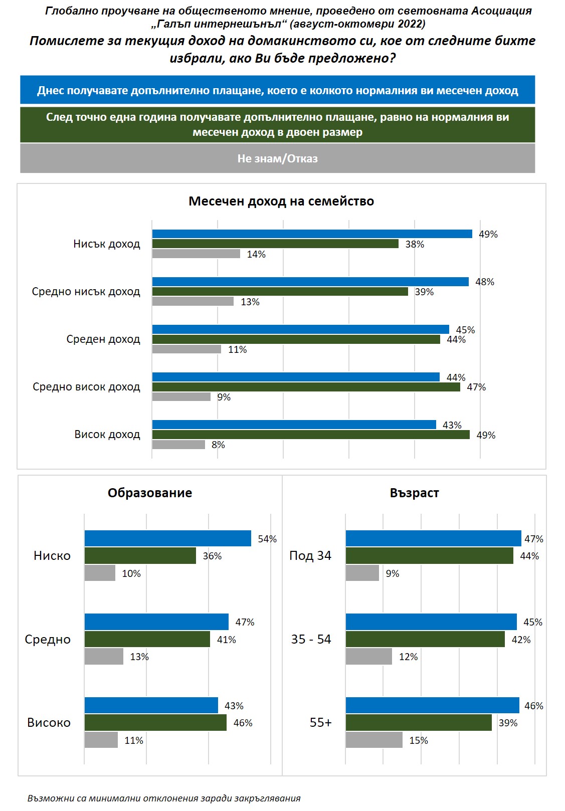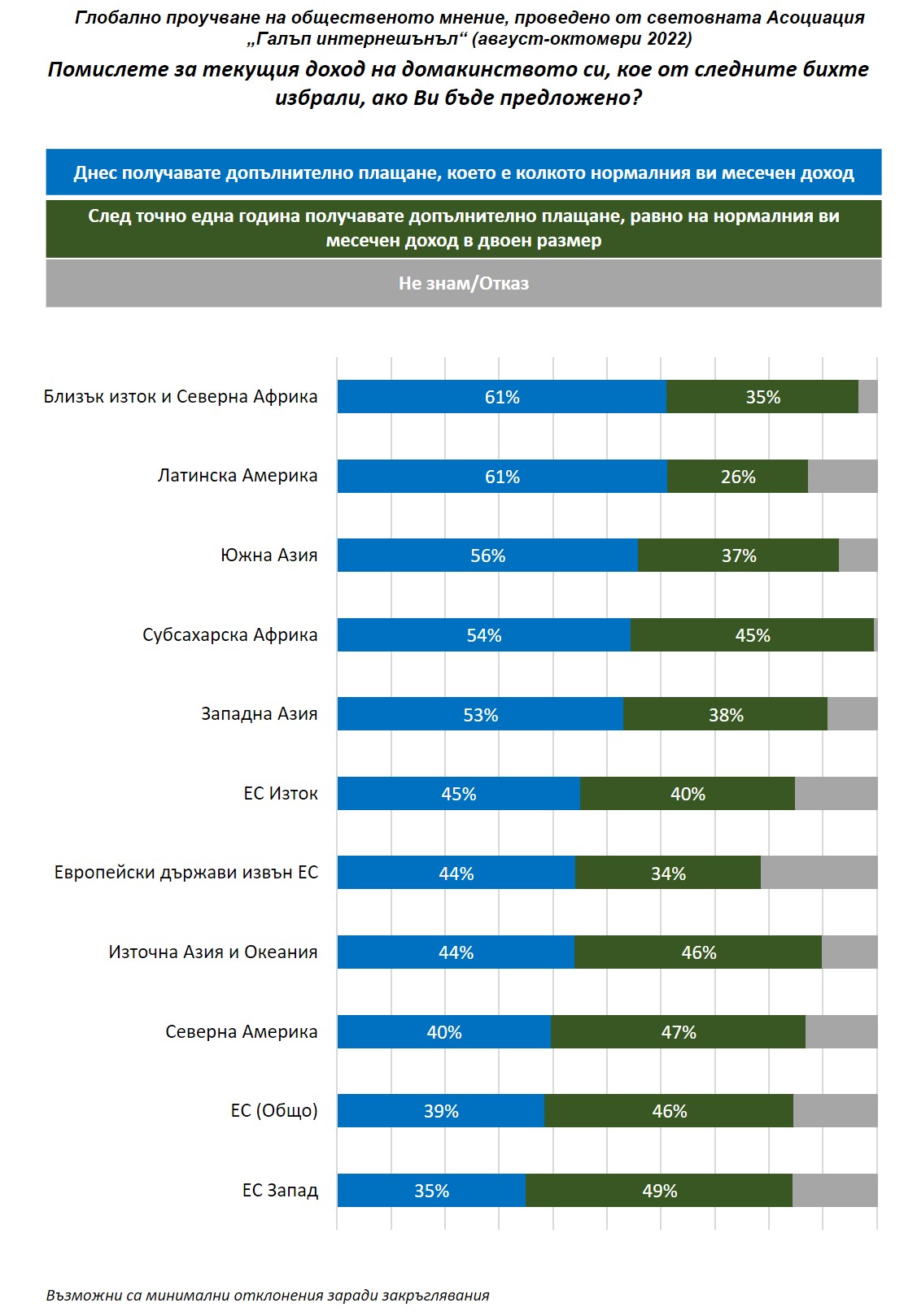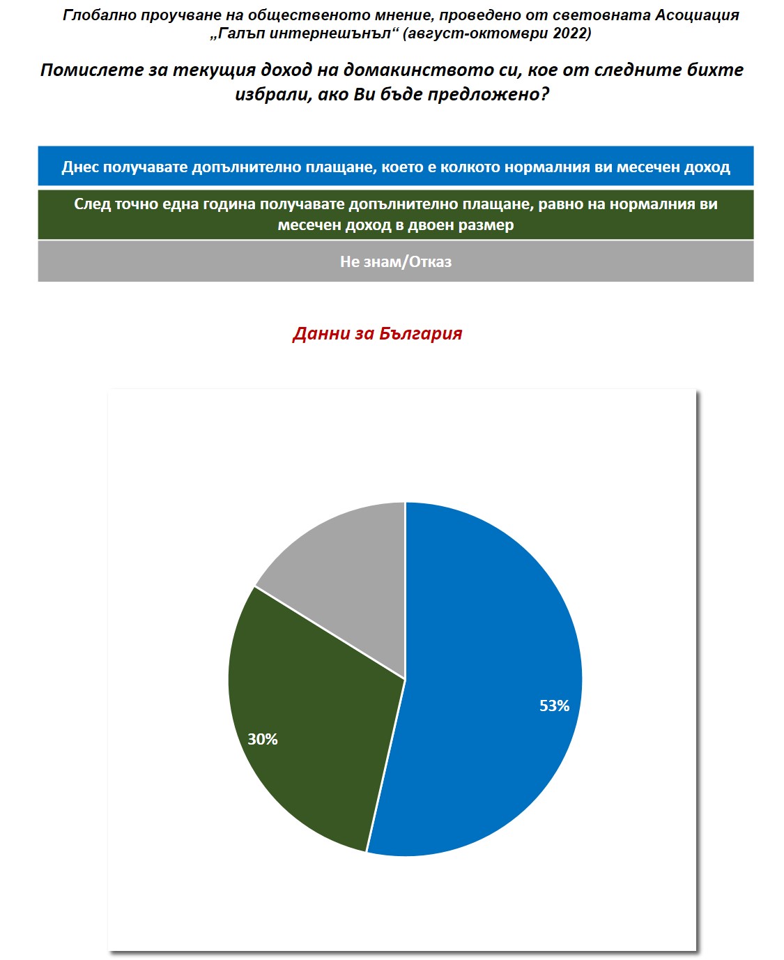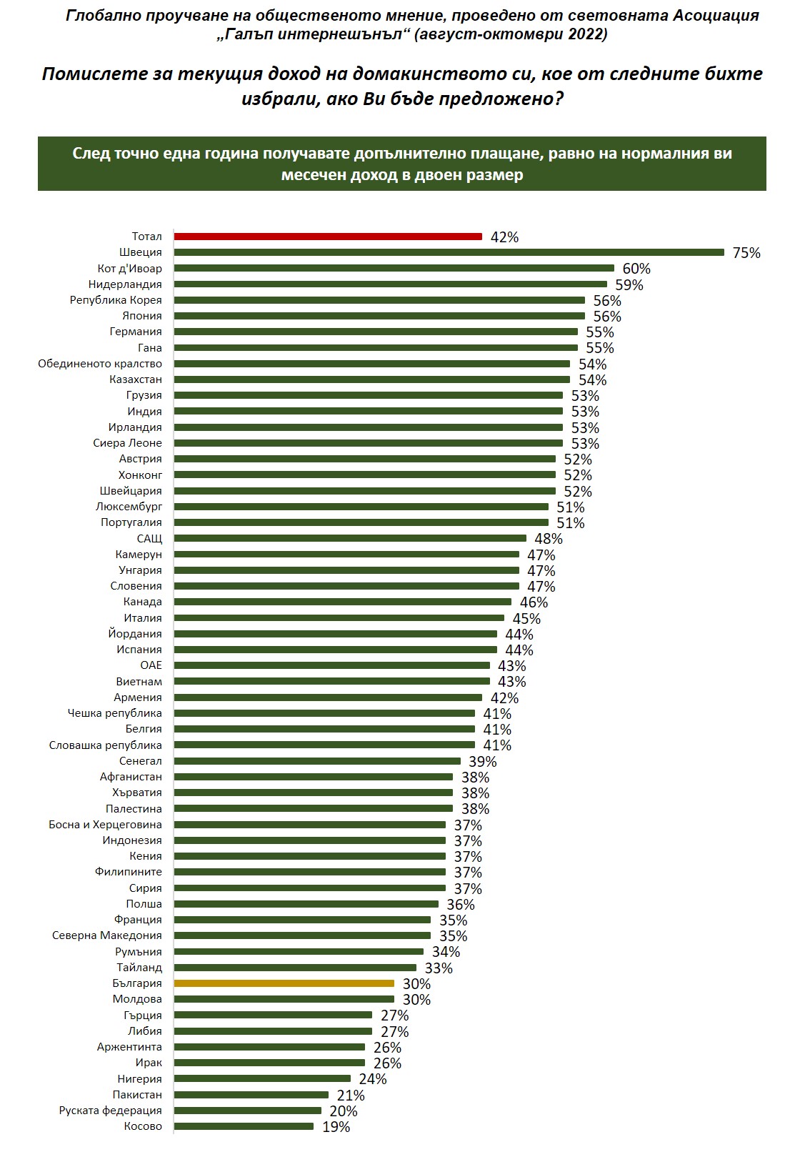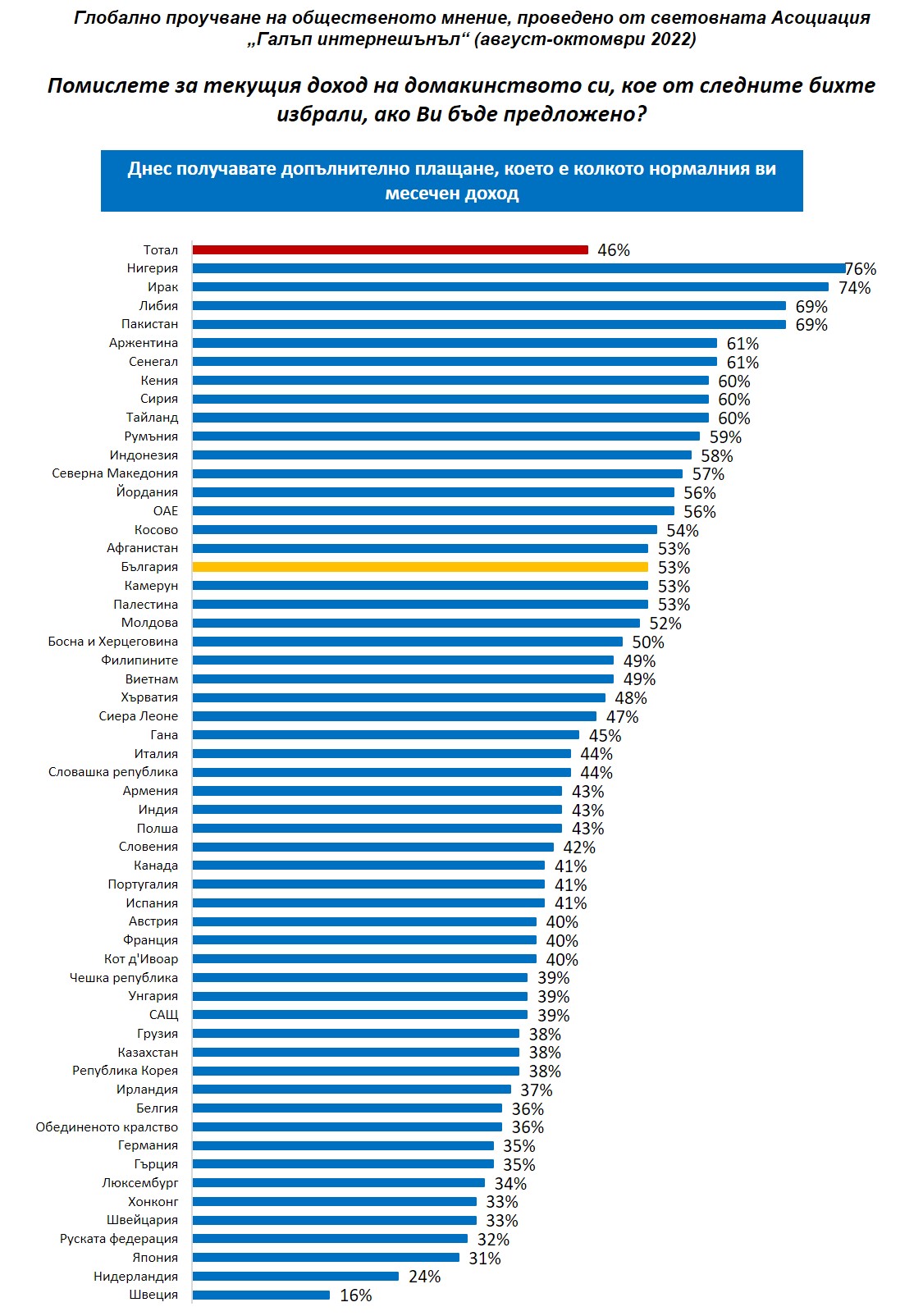 В България изследването е финансирано и проведено от „Галъп интернешънъл болкан“ за световната Асоциация „Галъп интернешънъл“.