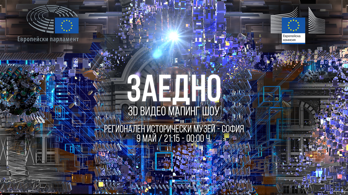 За Деня на Европа през тази година Бюрото на Европейския парламент организира триизмерно видео мапинг шоу „Заедно“, което ще бъде проектирано на фасадата на Регионалния исторически музей — София на 9 май от 21.15 часа.