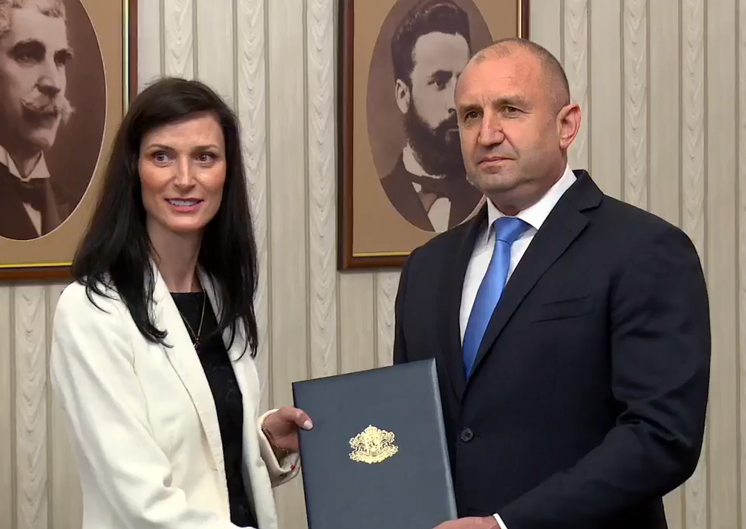 Президентът Румен Радев връчи първия мандат за съставяне на правителство на кандидата на ГЕРБ-СДС за премиер Мария Габриел. Тя заяви, че ще направи всичко възможно да се състави работещо експертно правителство.