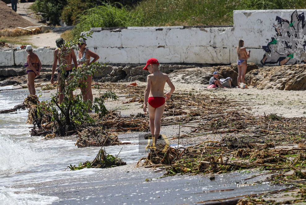 Според снимките, заливащи интернет пространството, в момента дори плажовете около Одеса си стават за къпане. Е, изхвърлени на брега клони, храсти, водорасли и боклуци има, но не е нещо, с което в България да не сме свикнали и без взривен язовир.