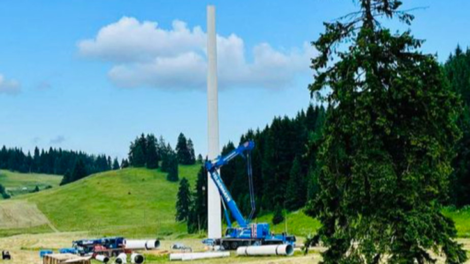 Ливадите на Рожен вече са окосени. На мястото до пилона е разположен огромен кран за височинния монтаж на коничната конструкция. Вътре не се допускат хора заради мерки за безопасност.