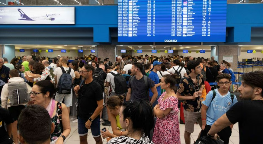 По същото време летището на остров Родос беше претъпкано от хиляди туристи, които през уикенда напуснаха хотелите си в засегнатите от пожарите курорти.