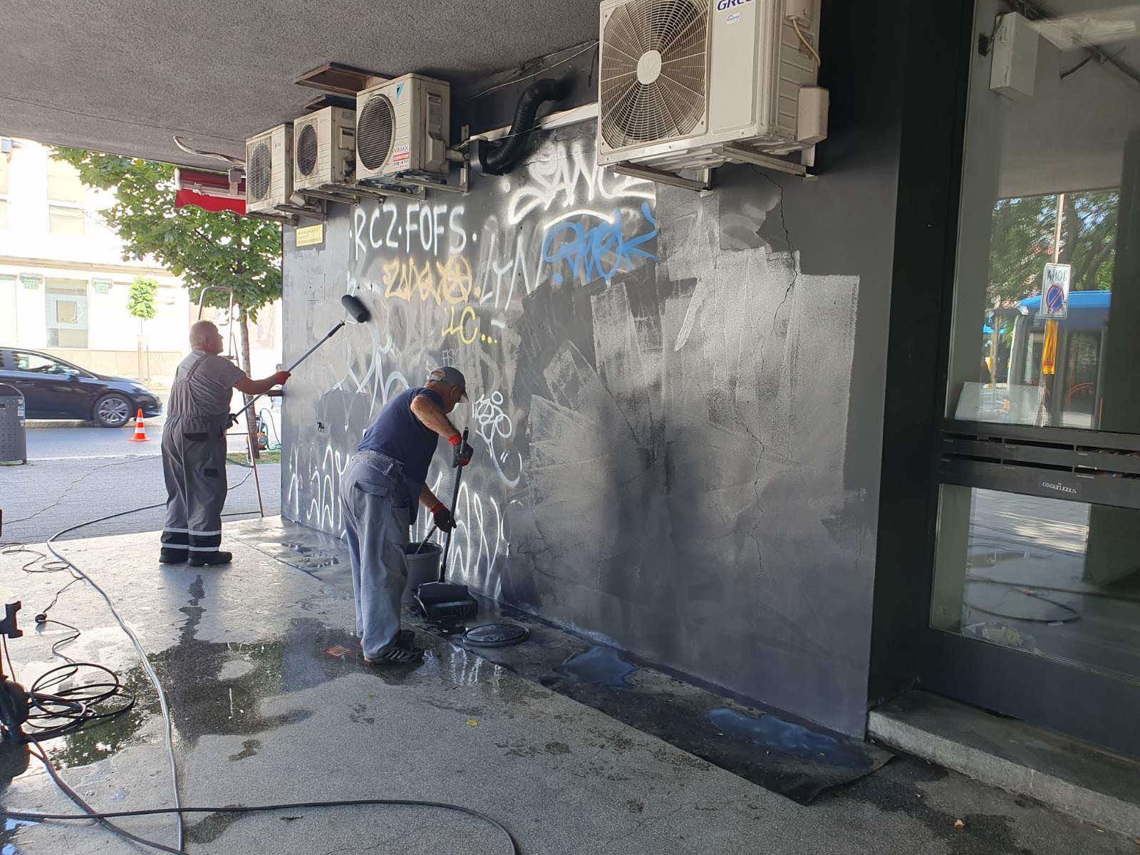 Почистването на надраскани обществени обекти, места, както и на фасади на сгради се извършва от екипи съвместно със Столичния инспекторат.