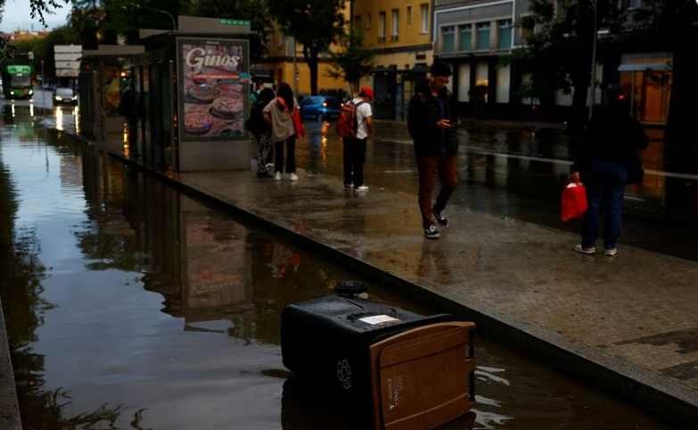 Внезапният проливен дъжд, който се изля над страната, превърна улиците в реки в Мадрид, Кастилия, Каталуния и Валенсия. В много райони падна и градушка.