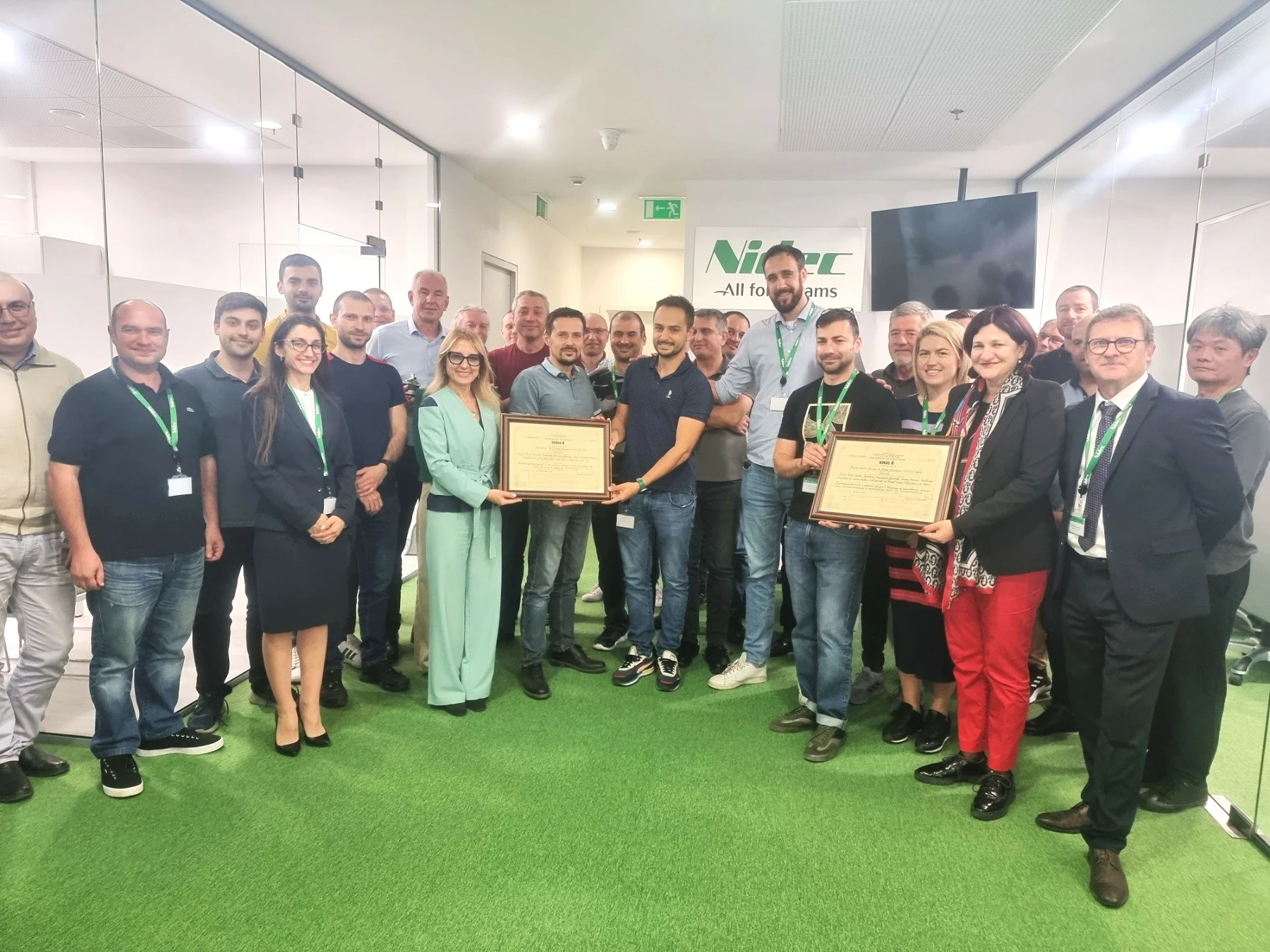 Министърът на иновациите и растежа Милена Стойчева връчи сертификат клас „А“ за инвестиция в научна и развойна дейност за 4 827 500 лв. на компанията „Нидек Елесис Ар енд Ди Юръп България“ ЕООД. По проекта се предвижда разкриването на 70 нови работни места. На церемонията в развойния център на компанията присъства и изпълнителният директор на Българската агенция за инвестиции Мила Ненова.