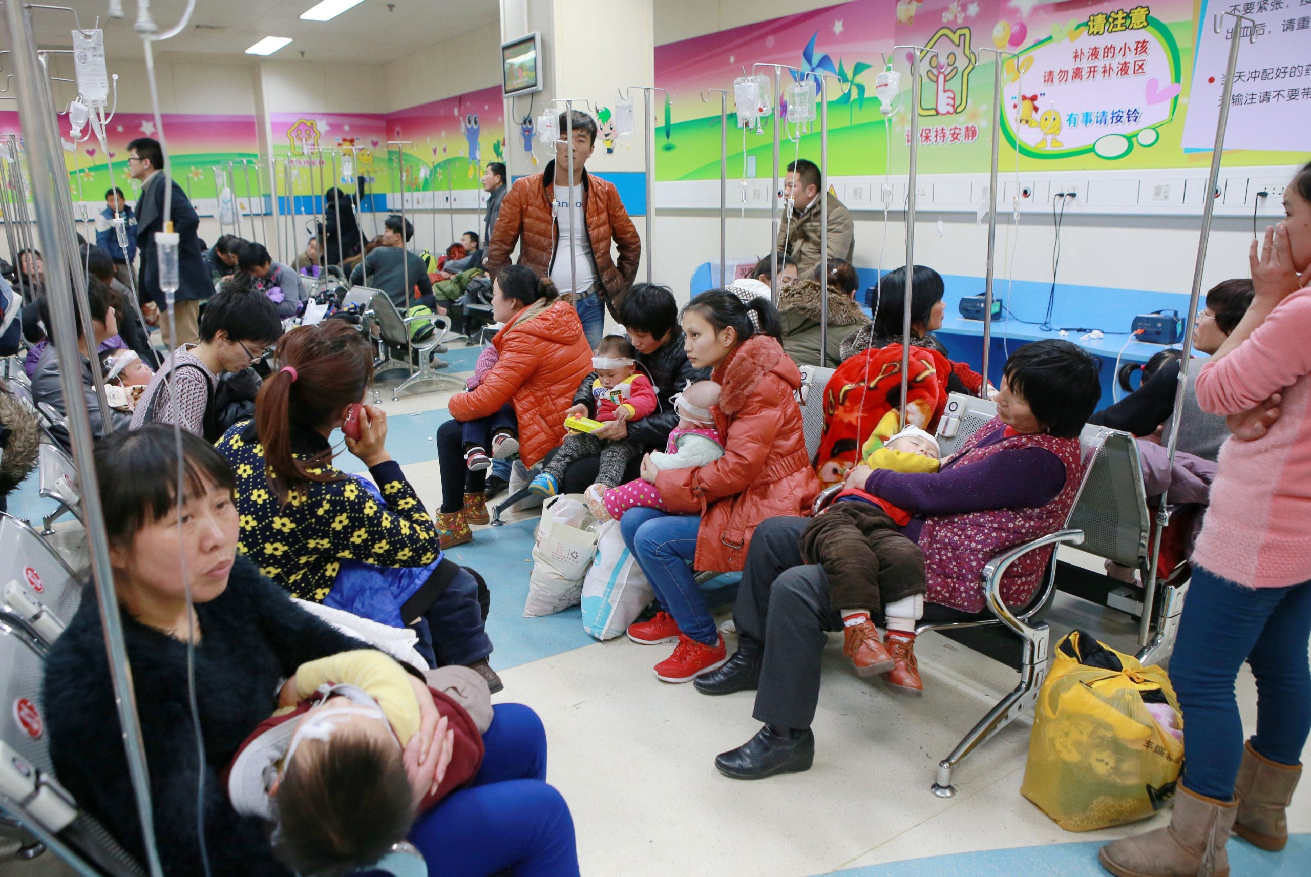 През последните дни медиите в градове като Сиан, в северозападната част на страната, публикуваха видеоклипове на болници, препълнени с родители и деца, които очакват прегледи. Някои потребители на социални медии публикуваха снимки на деца, които си пишат домашните в болница, докато са поставени на венозни системи, отбелязва Ройтерс.