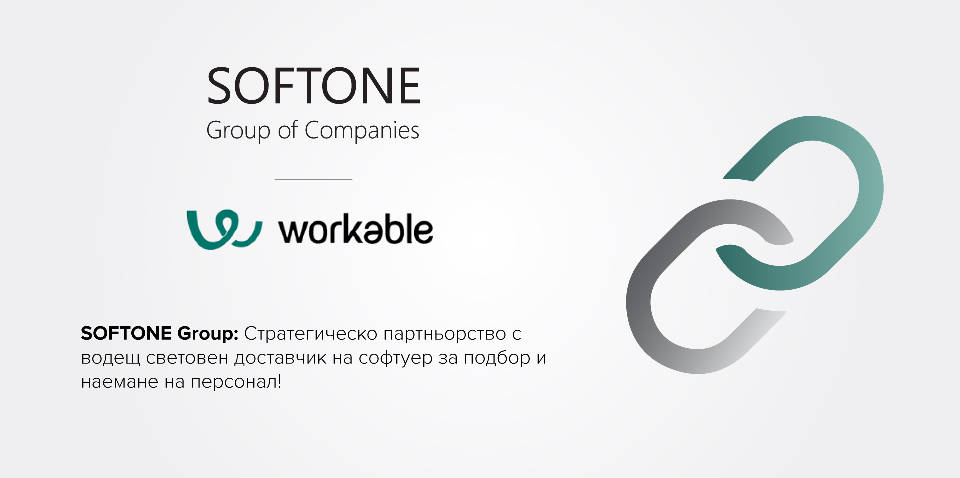 Ново стратегическо партньорство обявиха SOFTONE Group, водещият доставчик на облачно базиран бизнес софтуер в Гърция и Югоизточна Европа, и Workable, водещият глобален доставчик на решения за система за проследяване на кандидати (ATS), за интегриране и разпространение на техните продукти. Алиансът включва разработването на специализирани решения за подбор и наемане на работа, които ще бъдат предоставяни от SOFTONE Group в Гърция, Кипър, Румъния и България, с включена пълна интеграция с наличния обширен пакет от приложения за управление на човешки ресурси на SOFTONE (HRMS, myWorkplace, Payroll, Ergani LIVE).