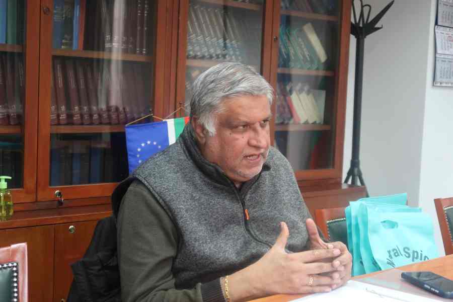 Нирадж Кумар, председател на Фондация „Българо-индийски технологичен форум „Махатма Ганди“ и председател на Сдружението за развитие на бизнес и културни отношения между Индия и България, разговаря с председателя на БТПП Цветан Симеонов.