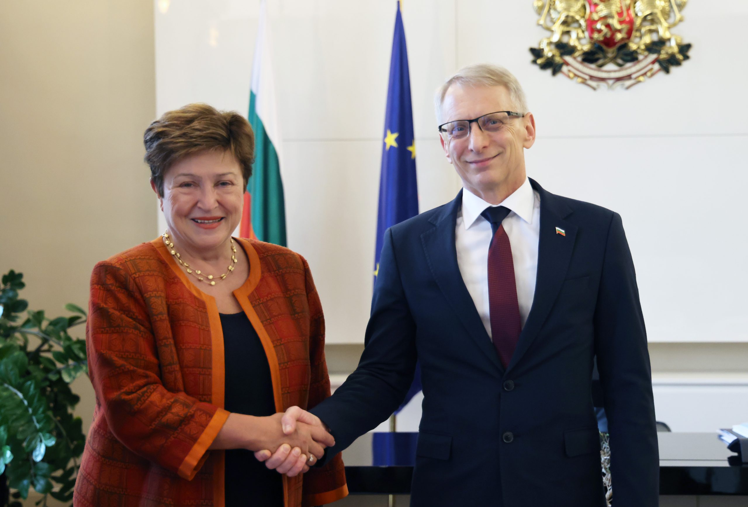 Това послание отправи премиерът акад. Николай Денков пред Кристалина Георгиева, управляващ директор на Международния валутен фонд. И посочи, че ръстът на брутния вътрешен продукт за 2023 г. е почти 2%, а инфлацията продължава да спада и в момента е около 3%. В хода на срещата министър-председателят запозна директора на Международния валутен фонд с основните постижения на правителството до момента и с приоритетите и реформите в икономическата и финансовата политика. „Присъединяването към еврозоната през 2025 г. е приоритет за България. Вече сме изпълнили изцяло три от четирите критерия“, заяви акад. Денков. И допълни, че има политическо съгласие и подкрепа за въвеждането на еврото в страната ни.