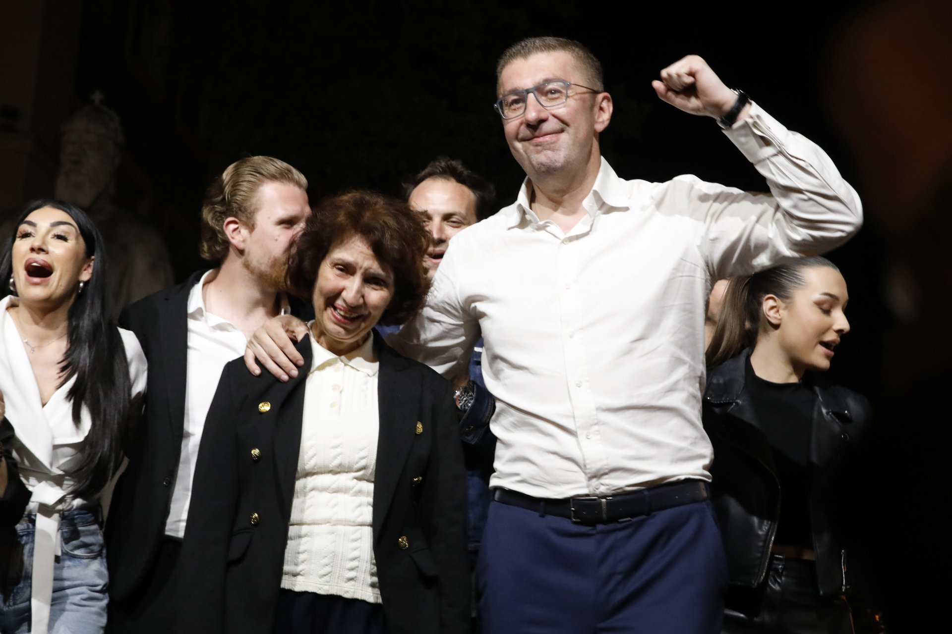 християните, атеистите… народа, който показа смиреност, но и голяма активност. За това има причина: престъпността, корупцията, фалшивите новини, обществените поръчки, шуробаджанащината накараха държавата да страда, а народа – да е разочарован“, заяви Мицкоски в победната си реч, като пропусна да спомене, че страната е и на етническите българи, които от векове живеят там. Също така, той назова съвсем умишлено страната с нейното старо име.