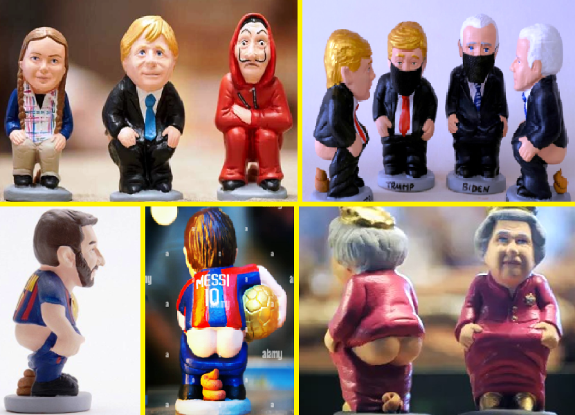 Caganer е фигурка на човек, който е приклекнал и сe облекчава на открито. По традиция тя носи баретина, типична каталунска шапка и държи лула в устата си, но с годините се е развил до такава степен, че днес намираме подобни фигурки на известни личности, политици, актьори, музиканти и, разбира се, футболисти.