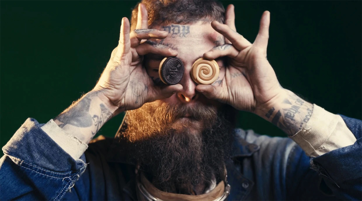 Oreo си партнира с певеца Post Malone за следващото си лимитирано издание на бисквитки, което включва уникален по рода си пълнеж за марката. За ограничен период компанията ще продава нов продукт, създаден с Malone, който има кремообразен пълнеж, смесващ солен карамел и вкус на крем от маслени бисквити, като всичко това е между шоколадова и златна бисквитка. Те пък са гравирани с девет дизайна, вдъхновени от артиста, като винилови плочи и перца за китара.