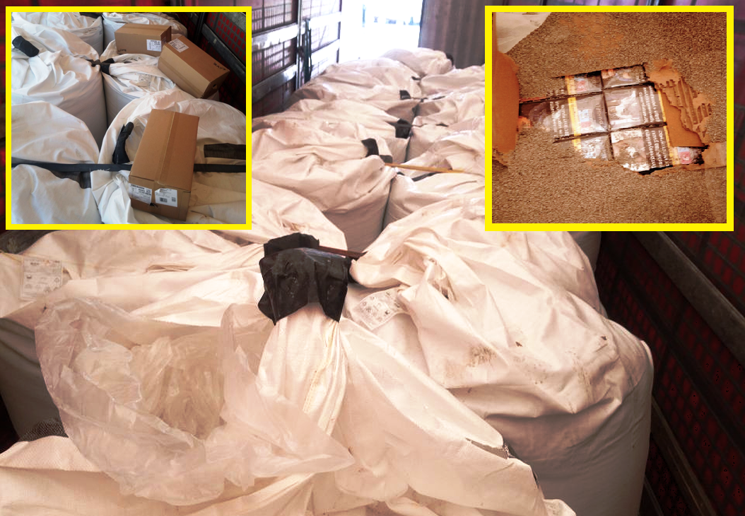 При извършения митнически контрол е установено нещо съмнително. Във вътрешността на 4 от чувалите има стоки, различни от обявената. В тези чували служителите откриват заровени 2000 кутии цигари (40 000 къса) от известна марка с български бандерол.