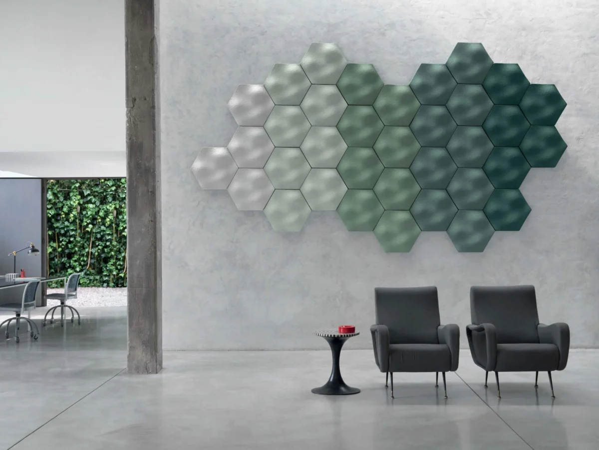 Геометричната им повърхност не само поглъща звуковите вълни, но и създава динамична игра на светлосенки, превръщайки стените в многослойни арт обекти.