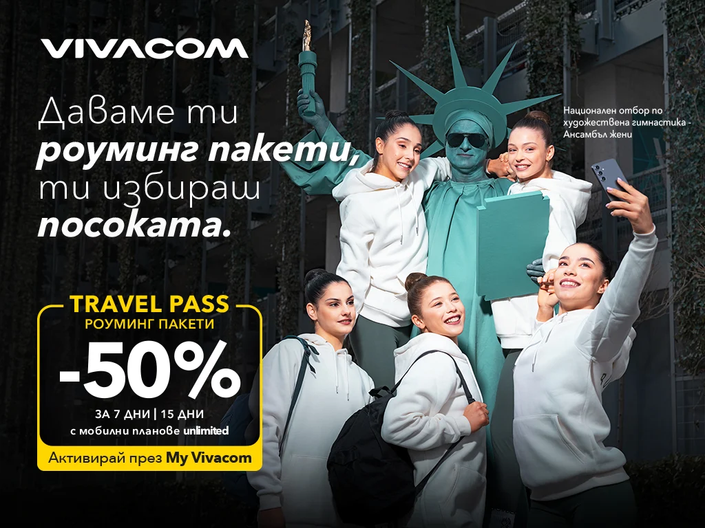 В разгара на активния сезон за пролетни пътувания, изборът на предпочитана дестинация често е свързан с нуждата за сигурност и свързаност. За всички, които искат да останат близо до дома от разстояние или да използват телефона си активно по време на пътуване за работа или връзка с най-близките им хора, Vivacom дава още повече свобода с Travel Pass роуминг пакети за 7 и 15 дни с 50% отстъпка. Офертата е валидна до 31 май 2026 г. за всички роуминг зони и е достъпна за частни и бизнес мобилни клиенти с планове Unlimited.